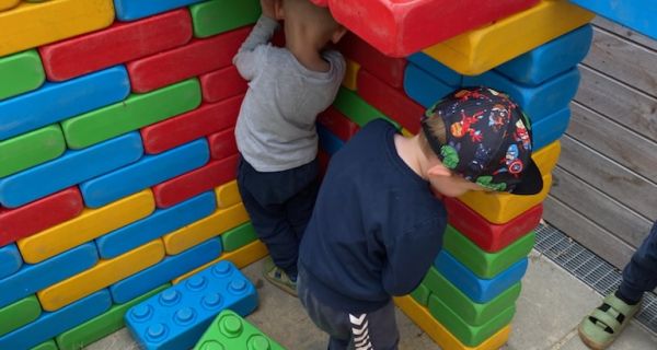 - Aldersopdelte stuer (EY0–1 og EY2), men åbne døre for fælles leg